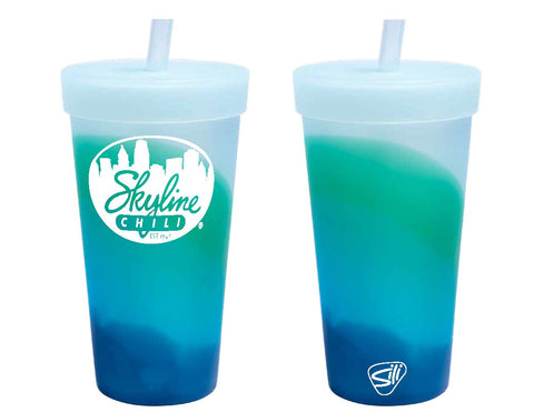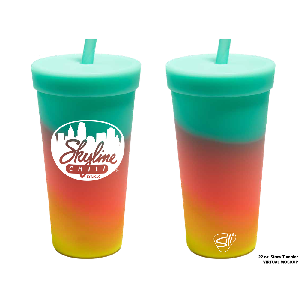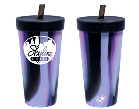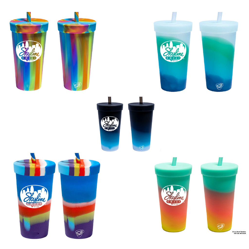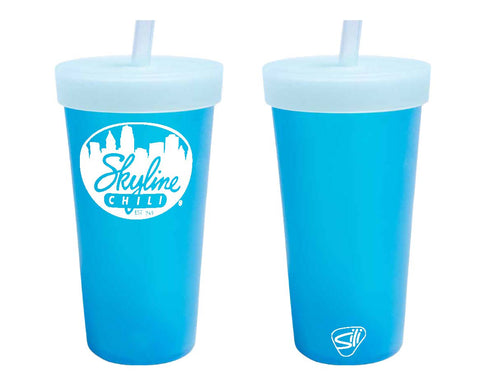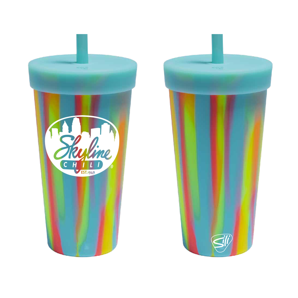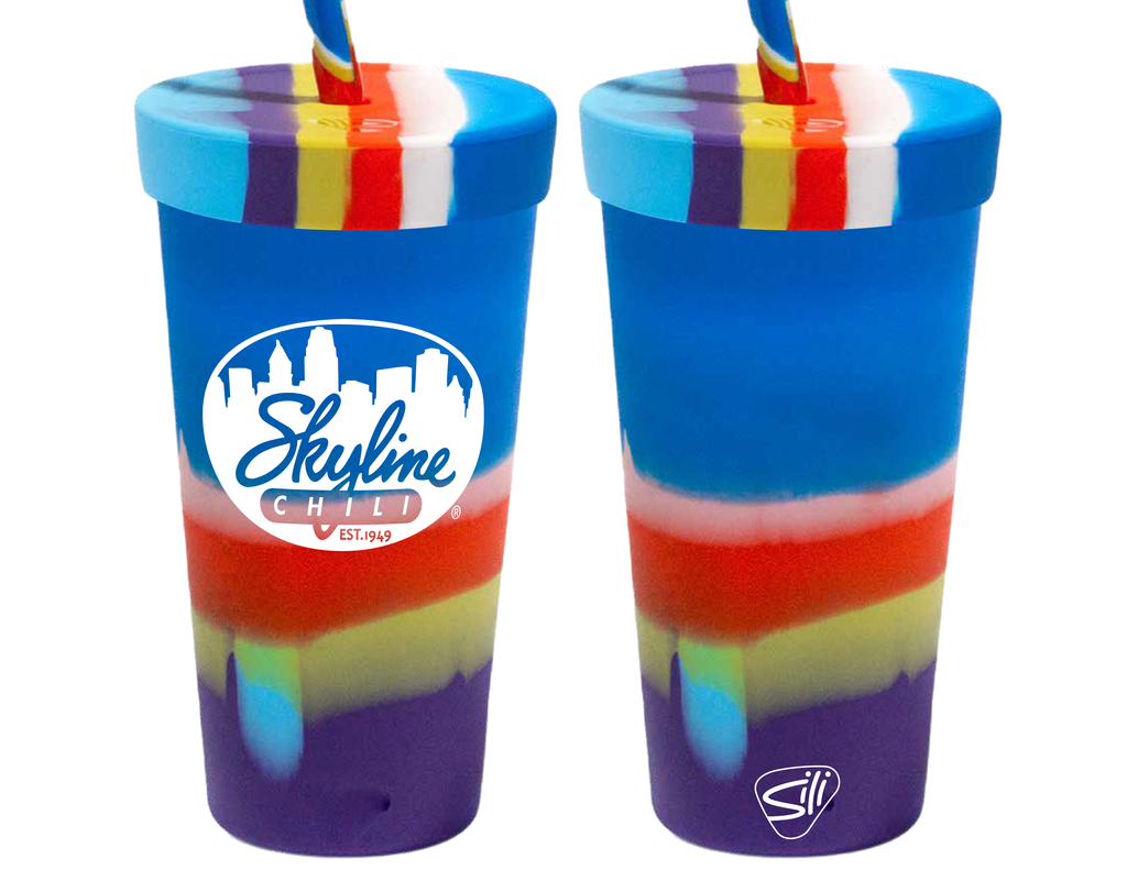 Skyline Chili SiLi Pint 22 oz. Silicone Straw Tumbler. Made from naturally occurring silica: a durable, non-toxic material that is flexible, durable, and can handle the heat. Safe for the microwave, dishwasher, freezer & more, and will not break, crack, chip, dent, fade or scratch. Holds both hot & cold beverages. Avoids spills with the no-slip base.
